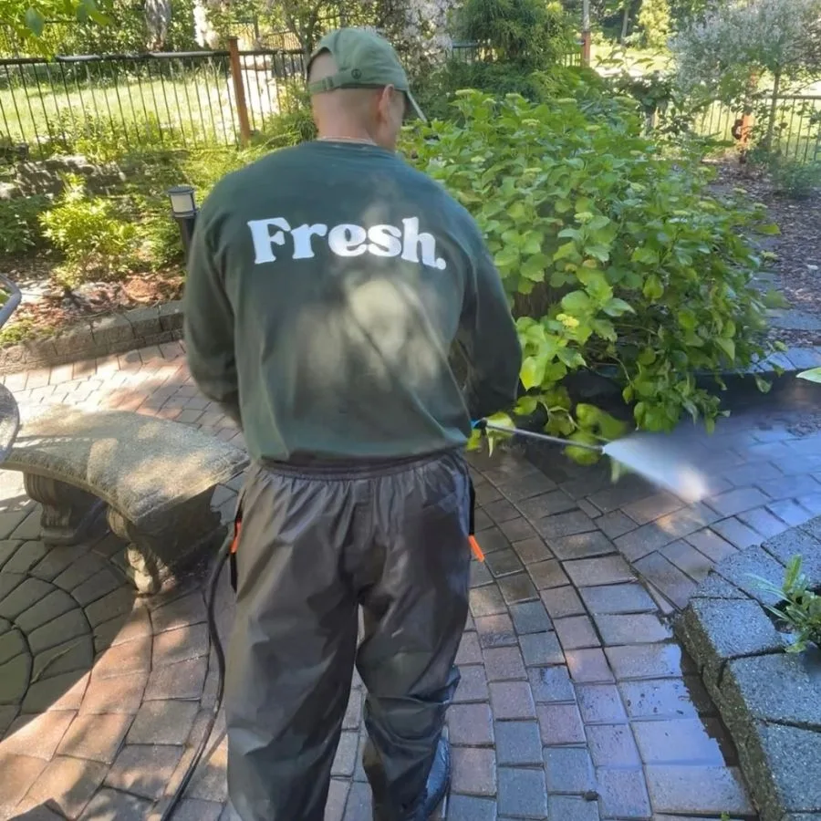 Professional paver cleaning services to restore patios, walkways, and outdoor living spaces. At Fresh, we clean concrete, brick, natural stone, and interlocking pavers, removing dirt, algae, moss, mold, and built-up grime. Using advanced pressure washing techniques and eco-friendly cleaning solutions, we safely refresh your pavers without damage. Our paver cleaning improves appearance, safety, and longevity, keeping your outdoor surfaces clean, revitalized, and well maintained year-round.